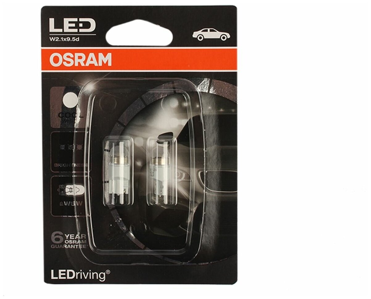Type: LED, size: M, W5W, purpose: interior lighting, For side lights, For car interior lighting, base: W2.1×9.5d, luminous flux: 70 lm, power: 1 W, voltage: 12 V