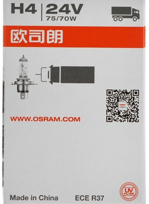 Type: halogen, size: H4, purpose: low beam, low/high beam, high beam, For low/high beam, base: P43t, P43t-38, luminous flux: 1900 lm, power: 75 W, voltage: 24 V
