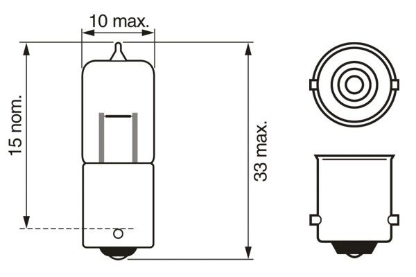 Type: incandescent, size: C10W, H10, H10W, W10W, BA9s, purpose: side lights, interior lighting, parking lights, base: BA9s, PY20d, SV8.5, power: 10 W, voltage: 12 V