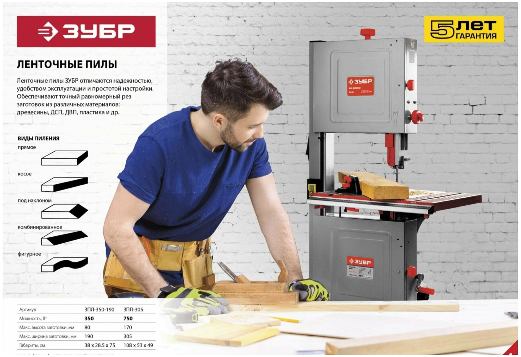 Type: vertical, operating principle: semi-automatic, maximum workpiece height: 80 mm, power: 350 W, voltage: 220 V, processing material: wood, metal, plastic, blade length: 1425 mm, work table length: 290 mm, wide