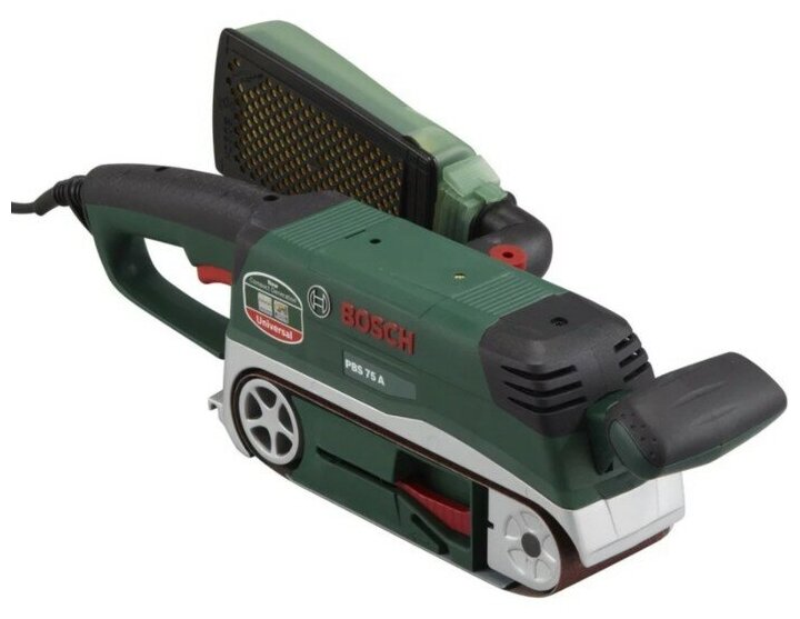 Power type: mains, power consumption: 750 W, max. belt speed: 350 m/min, belt width: 75 mm, belt length: 533 mm, functions: soft start, rotation speed adjustment, design features: on/off button lock