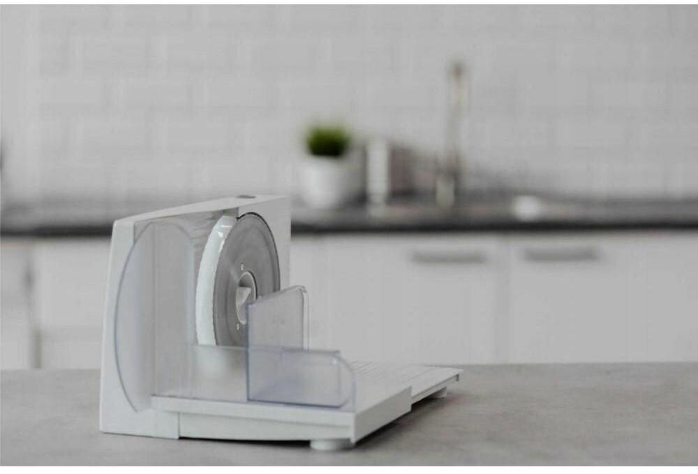 Type: slicer, power: 150 W, food holder, slicing tray, folding body, operating mode: pulse, constant, safe switch on, finger protection, number of speeds: 1, body material: plastic