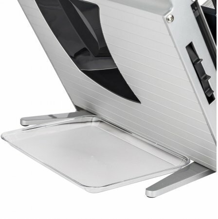 Type: slicer, power: 170 W, food holder, slicing tray, folding body, operating mode: pulse, safe switch-on, number of speeds: 1, body material: metal, maximum cutting thickness
