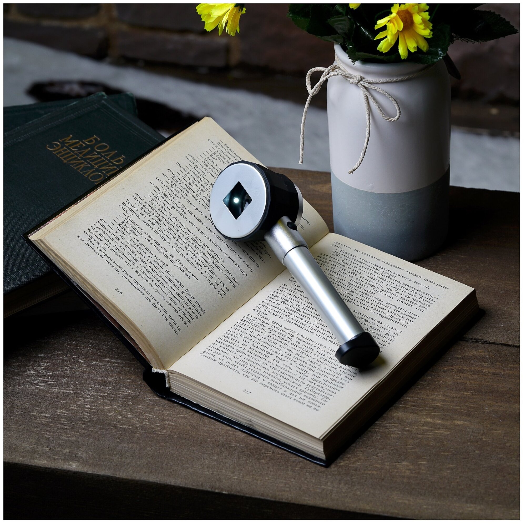 Purpose: viewing, design: with handle, magnification factor: 10, backlit, lens shape: round, included: napkin, case, lens diameter: 30 mm, lens material: glass, frame/case material: metal