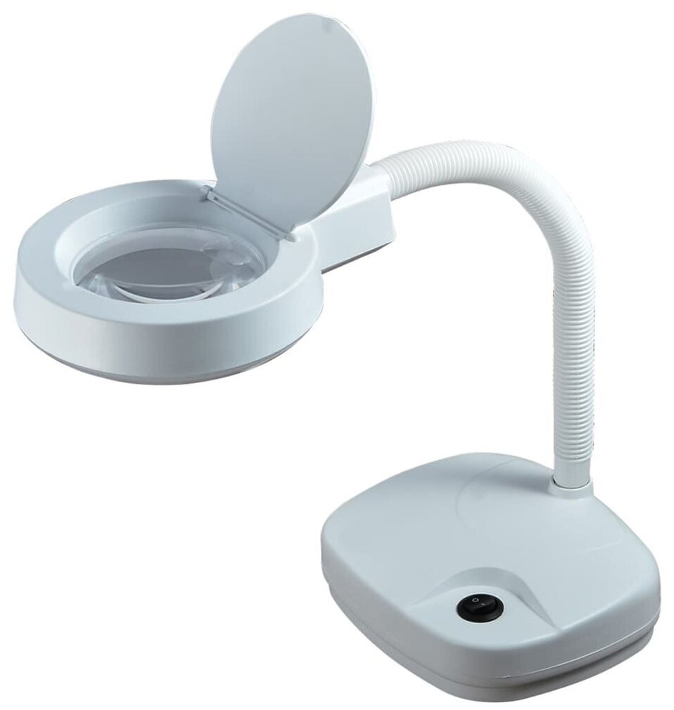 Purpose: for handicrafts/textile, design: magnifying lamp, tabletop, magnification factor: 2, 3, backlit, lens shape: round, lens diameter: 90 mm, lens material: plastic, frame/case material: plastic