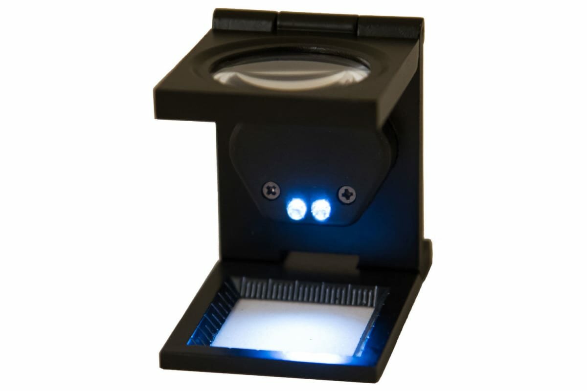 Purpose: for handicrafts/textile, jewelry/watchmaking, design: desktop, magnification factor: 6, backlit, lens shape: round, lens diameter: 30 mm, lens material: glass, frame/case material: metal