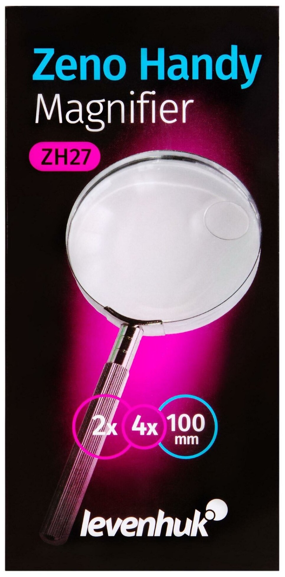 Purpose: for reading, viewing, design: with handle, magnification factor: 2, 4, lens shape: round, lens diameter: 100 mm, lens material: optical polymer, frame/case material: metal
