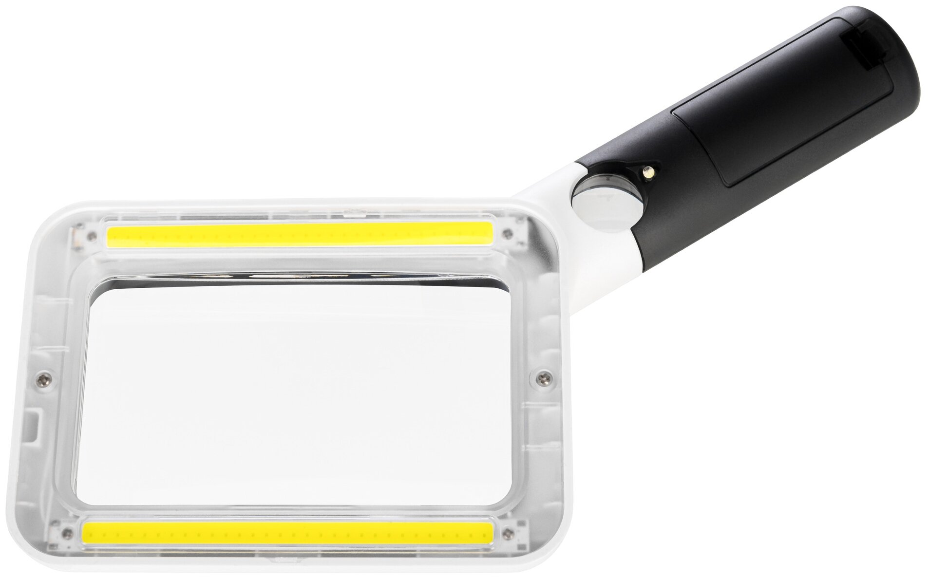 Lens diameter 108x63 mm, 3 AAA batteries not included, 2 COB LEDs and 1 classic, brightness adjustment