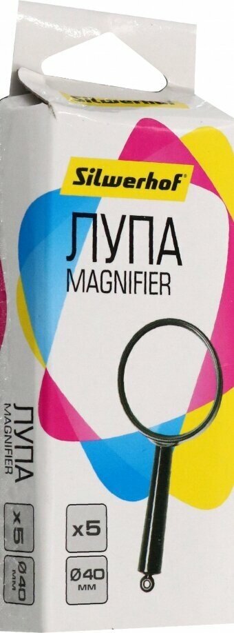 Purpose: viewing, design: with handle, magnification factor: 5, lens shape: round, lens diameter: 40 mm, lens material: glass, frame/case material: plastic