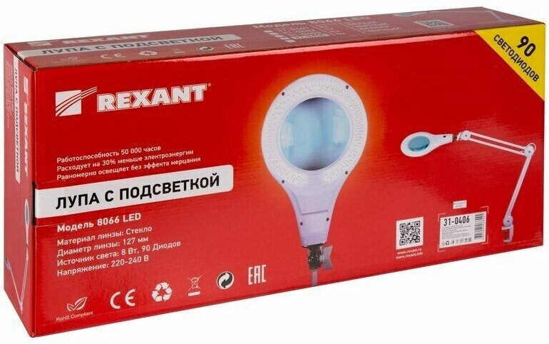 Purpose: Designed for visual magnification of various small objects or their fragments, design: magnifying lamp, on a clamp, tabletop, Clamp mount to the table, magnification factor: 5 diopters - 5D