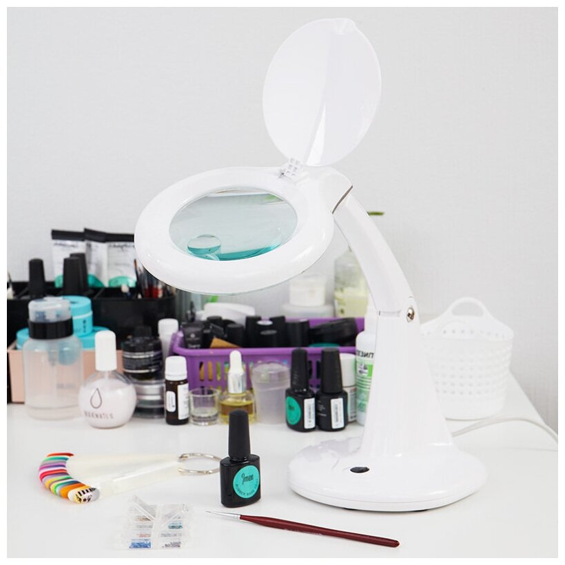 Purpose: for cosmetology, jewelry/watchmaking, design: magnifying lamp, tabletop, illuminated, included: stand, lens diameter: 100 mm