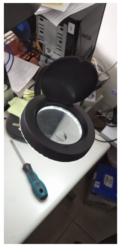 Purpose: for electronics repair, design: magnifying lamp, tabletop, magnification factor: 2, 20, with backlight, lens shape: round, lens diameter: 85 mm, lens material: glass