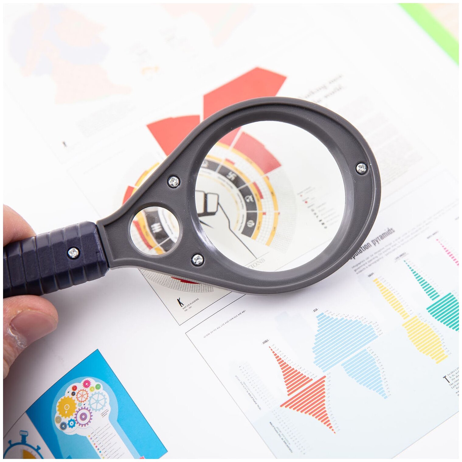 Purpose: for reading, viewing, design: with handle, magnification factor: 3, 6, lens shape: round, lens diameter: 50 mm, frame/case material: plastic