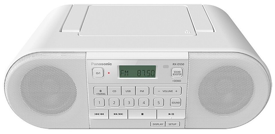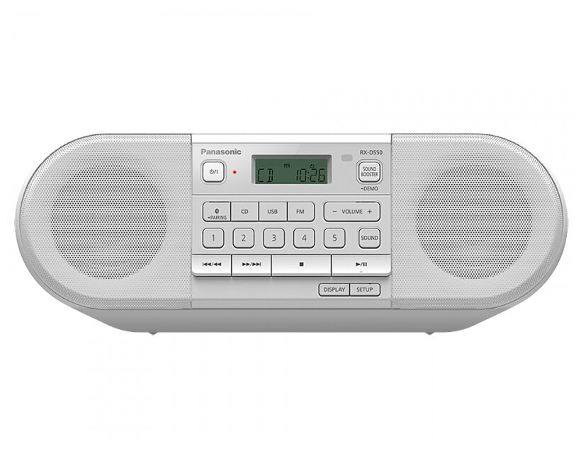 Type: CD, radio power: 20 W, CD player: CD-R, CD-RW, MP3, radio bands: FM, features: display, remote control, bass enhancement system, stereo sound, timer, clock, connectors and interfaces: Bluetooth, USB Type A, audio input