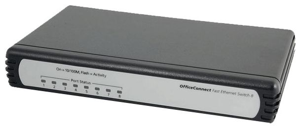 Number of LAN ports: 8, basic data transfer rate: 100 Mbit/s, network standards: IEEE 802.1p Priority tags, Jumbo Frame, MDI/MDIX auto-sensing, switch management type: level 2