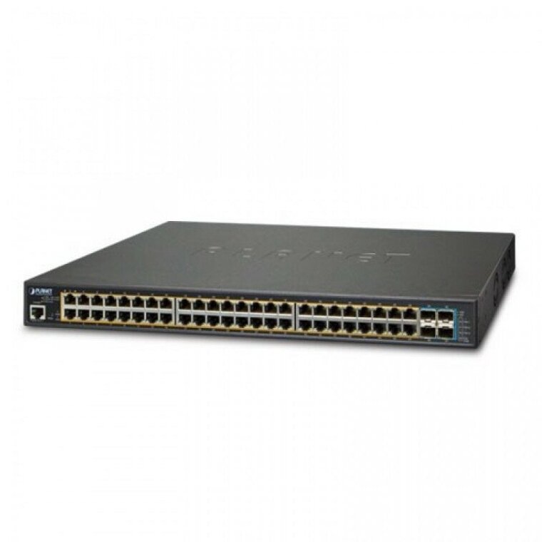 Number of LAN ports: 48, base data transfer rate: 1 Gbit/s, network standards: IEEE 802.1d Spanning Tree, IEEE 802.1p Priority tags, IEEE 802.1q VLAN, IEEE 802.1s Multiple Spanning Tree, IEEE 802.3ad Link Aggregation Control Protocol, Jumbo Frame, MDI/MDI