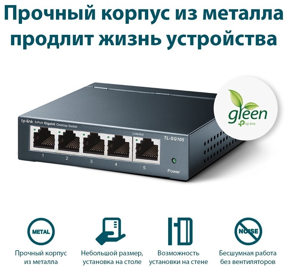 Number of LAN ports: 5, base data transfer rate: 1 Gbit/s, network standards: IEEE 802.1p Priority tags, IEEE 802.3ab, IEEE 802.3i, IEEE 802.3u, IEEE 802.3x, IGMP Snooping, Jumbo Frame, MDI auto-detection /MDIX, switch management type: unmanaged