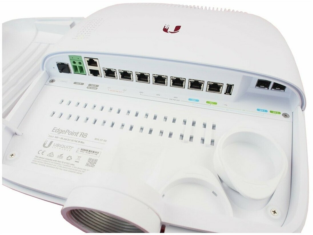2 combined RJ45/SFP ports; 2 high power PoE Out ports eth1-eth2: 24/54V 1.4A and 5 standard ports eth3-eth7: 24V 0.7A, PoE budget up to 340 W