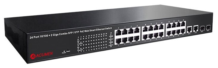 Number of LAN ports: 24, basic data transfer rate: 100 Mbit/s, network standards: IEEE 802.1d Spanning Tree, IEEE 802.1p Priority tags, IEEE 802.1q VLAN, IEEE 802.3ad Link Aggregation Control Protocol, MDI/MDIX auto-detection, Features: PoE support