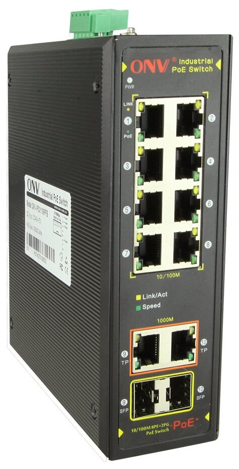 PoE budget per port 30W; two RJ45/SFP combo ports