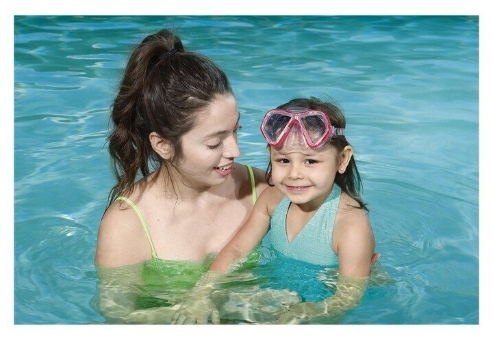 Can be supplied in colors: pink, blue; For children from 3 years old; set includes: snorkel, mask