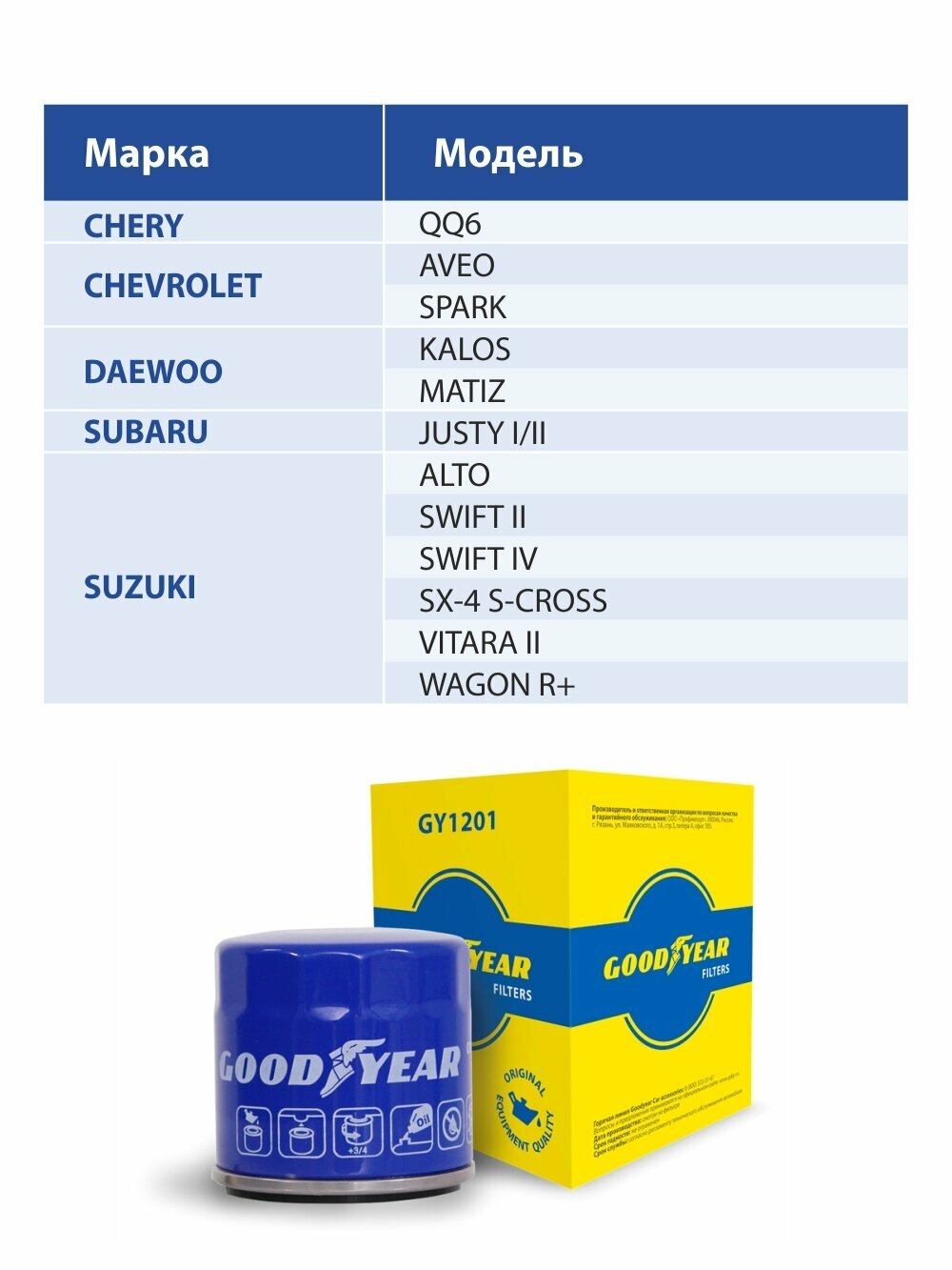 Type: oil filter, car make: Chery, Chevrolet, Daewoo, Subaru, Suzuki