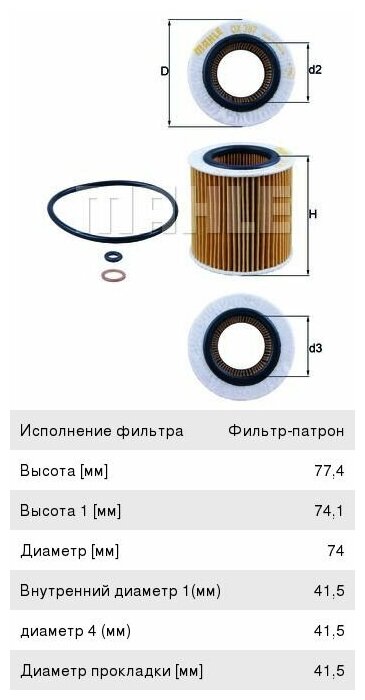Filter version - filter cartridge; gasket diameter mm - 41.5; 2 Diameter mm - 41.5; 2 height mm - 74; height mm - 77; 2 internal diameter mm - 41.5; internal diameter mm - 41; outer diameter mm - 74