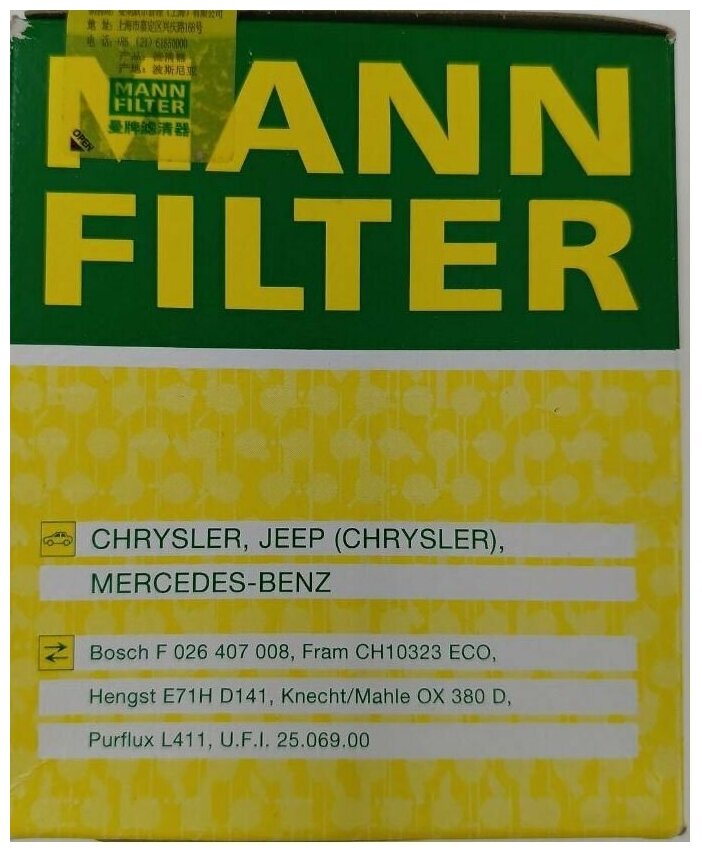 Type: oil filter, car make: Chrysler, Jeep, Mercedes-Benz, MERCEDES-BENZ