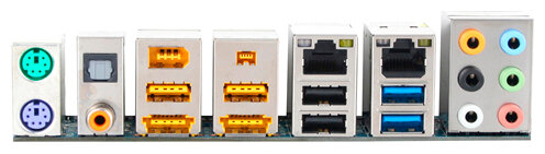 FireWire IEEE1394a x2, LPT, PS/2 keyboard/mouse, USB 3.0 x 2, eSATA x 2, S/PDIF optical output