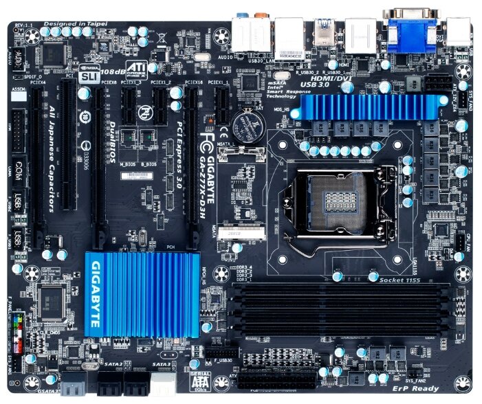 Socket: LGA1155, chipset name: Intel Z77, form factor: ATX, processor manufacturer: Intel, memory type: DDR3 DIMM, number of memory slots: 4, number of PCI-E x16 slots: 3, number of PCI-E x1 slots: 3 , wireless interfaces: no Wi-Fi, max