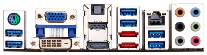 DVI, DisplayPort, HDMI, PS/2 keyboard/mouse, USB 3.0 x 6, VGA, eSATA x 2, S/PDIF optical output