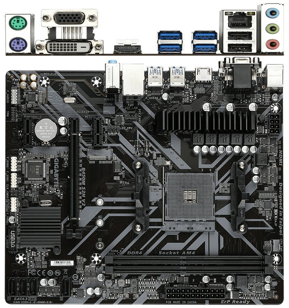 Socket: AM4, chipset name: AMD B450, form factor: microATX, processor manufacturer: AMD, memory type: DDR4 DIMM, support ECC/non-ECC, DDR4, number of memory slots: 2, number of M.2 slots: 1, Number of PCI-E x16 slots: 1, Number of PCI-E x1 slots