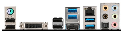 DVI, HDMI, PS/2 keyboard/mouse, USB 3.1 x 4, S/PDIF optical output