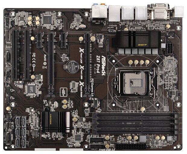 Socket: LGA1150, chipset name: Intel Z87, form factor: ATX, processor manufacturer: Intel, memory type: DDR3 DIMM, number of memory slots: 4, number of PCI-E x16 slots: 2, number of PCI-E x1 slots: 2 , wireless interfaces: no Wi-Fi, max