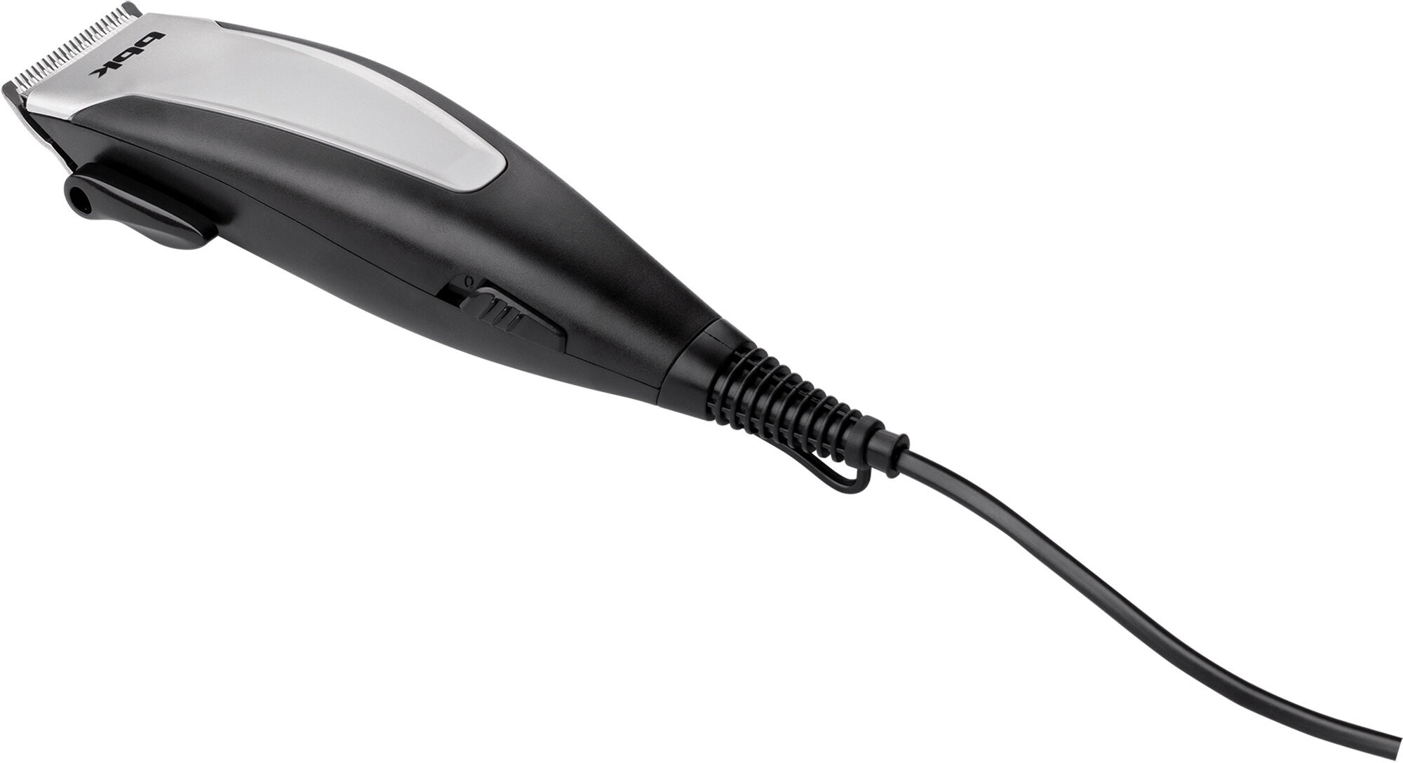 Purpose: for hair cutting, type: hair clipper, power supply: mains, blade material: stainless steel, length adjustment method: changing attachments, included: case, number of attachments: 4