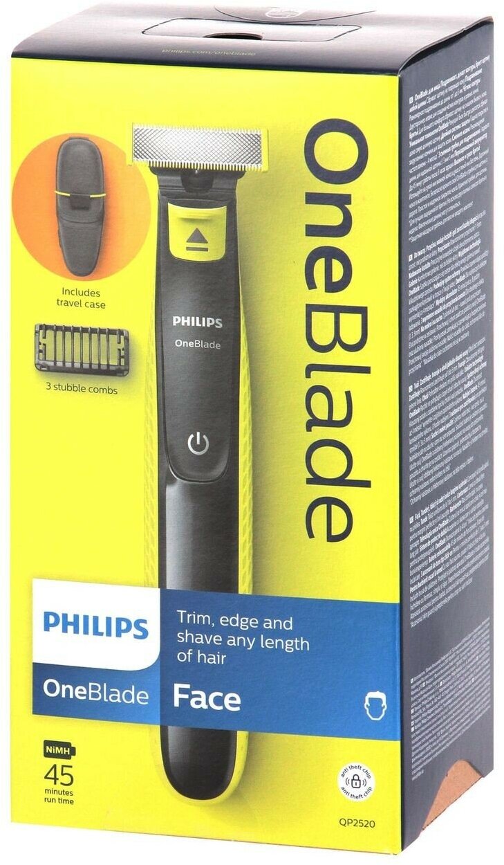 Double-sided blade, wet and dry shaving, stubble trimming, stubble shaving, contouring, trimming combs 1, 3 and 5 mm; The service life of the replacement blade is up to 4 months; adapter