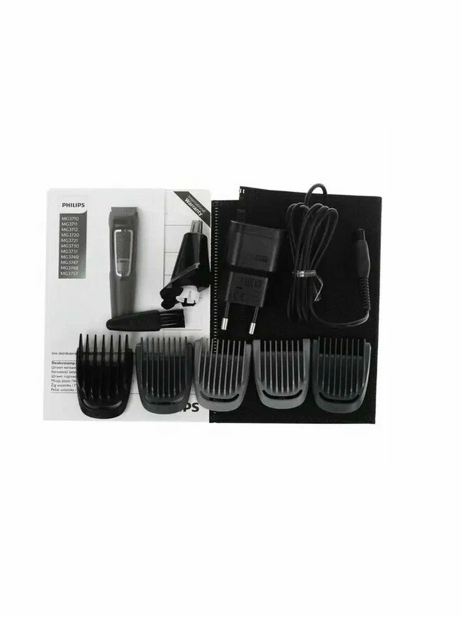Attachments: 2 stubble combs 1.2 mm, 2 beard combs 3.5 mm and 1 hair comb 9 mm