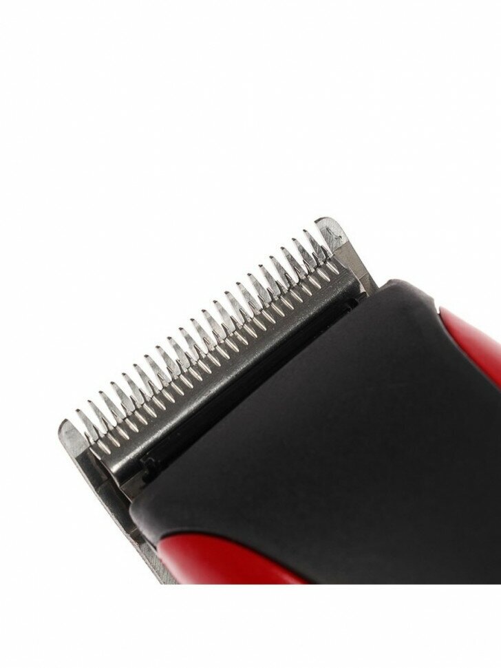 Purpose: for hair cutting, type: hair clipper, power: mains, blade material: stainless steel, length adjustment method: changing attachments and adjustment, features: rubberized inserts, included: scissors