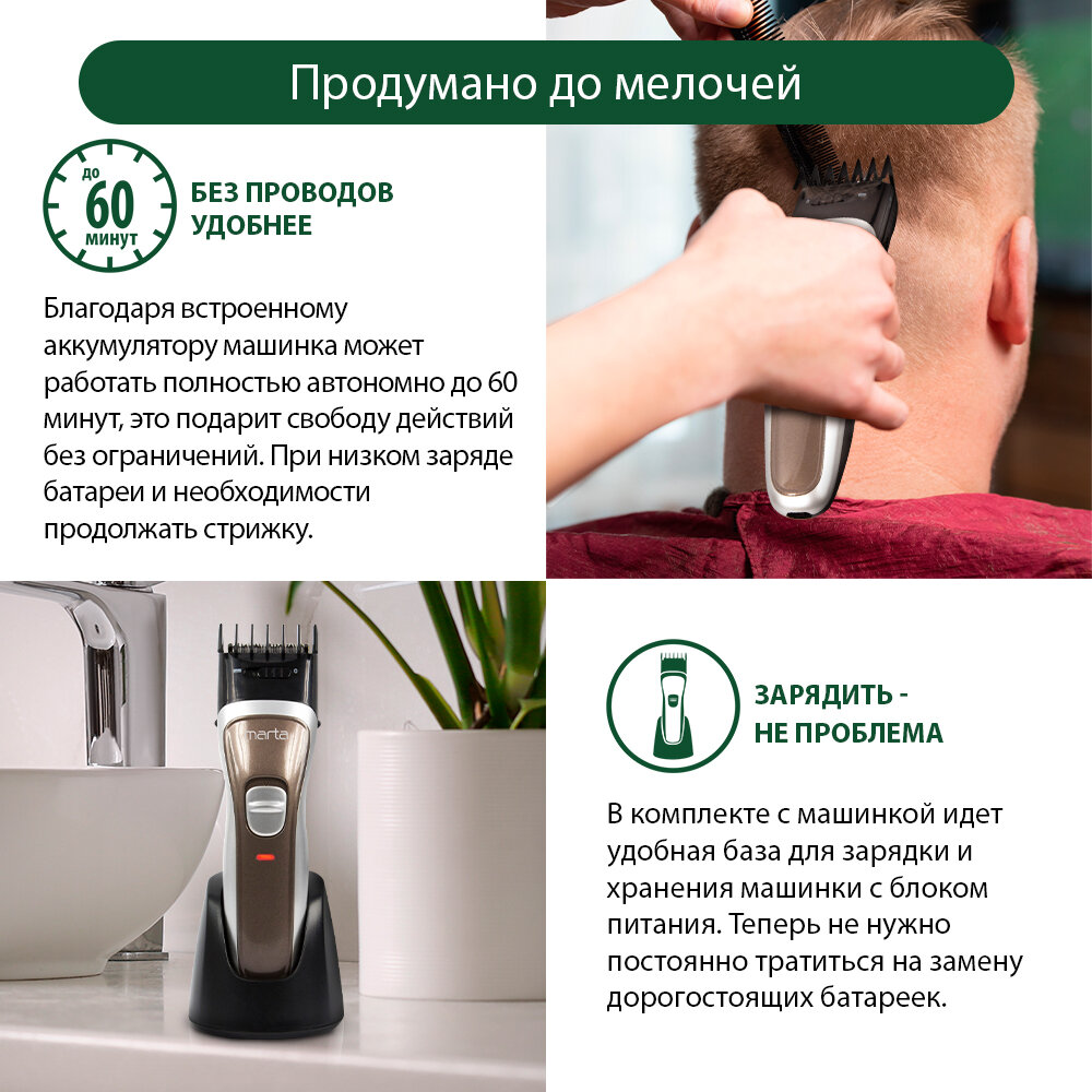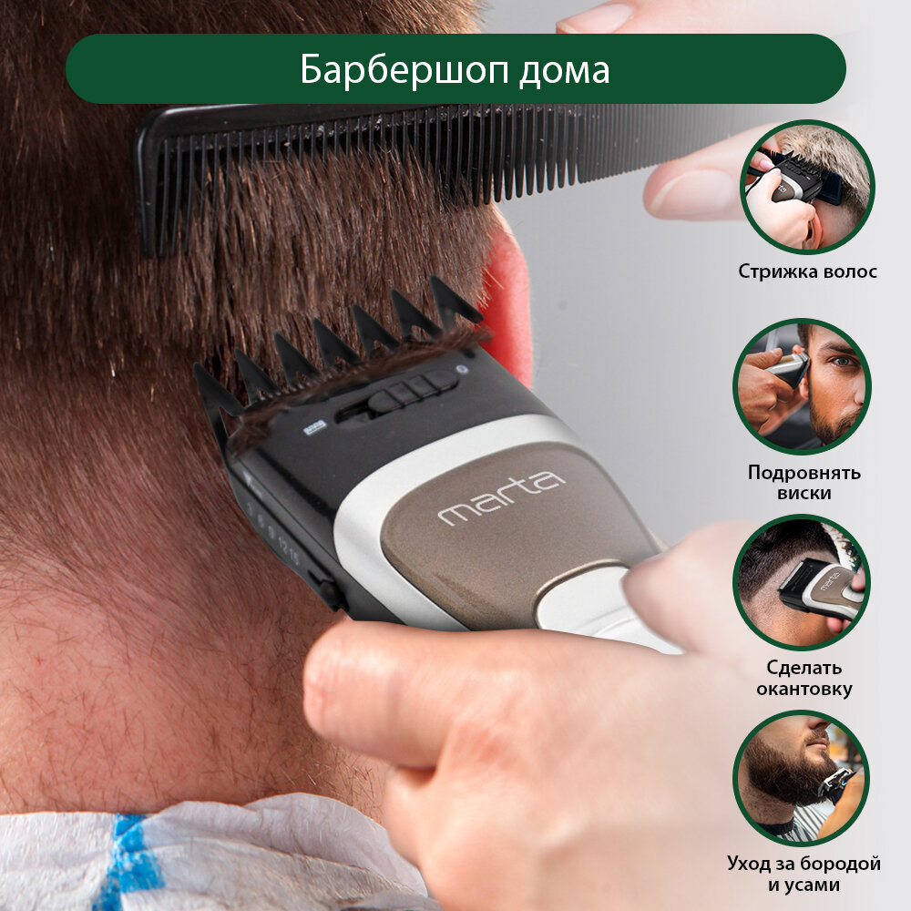 Purpose: for hair cutting, type: hair clipper, power: autonomous/from the mains, length adjustment method: changing attachments and adjustment, features: charging indicator, included: scissors, case, number of attachments: 2, in�