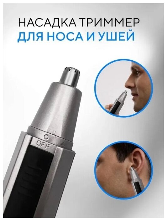 Purpose: for beard and mustache, for cutting nose and ears, for cutting hair, type: trimmer, battery type: AA
