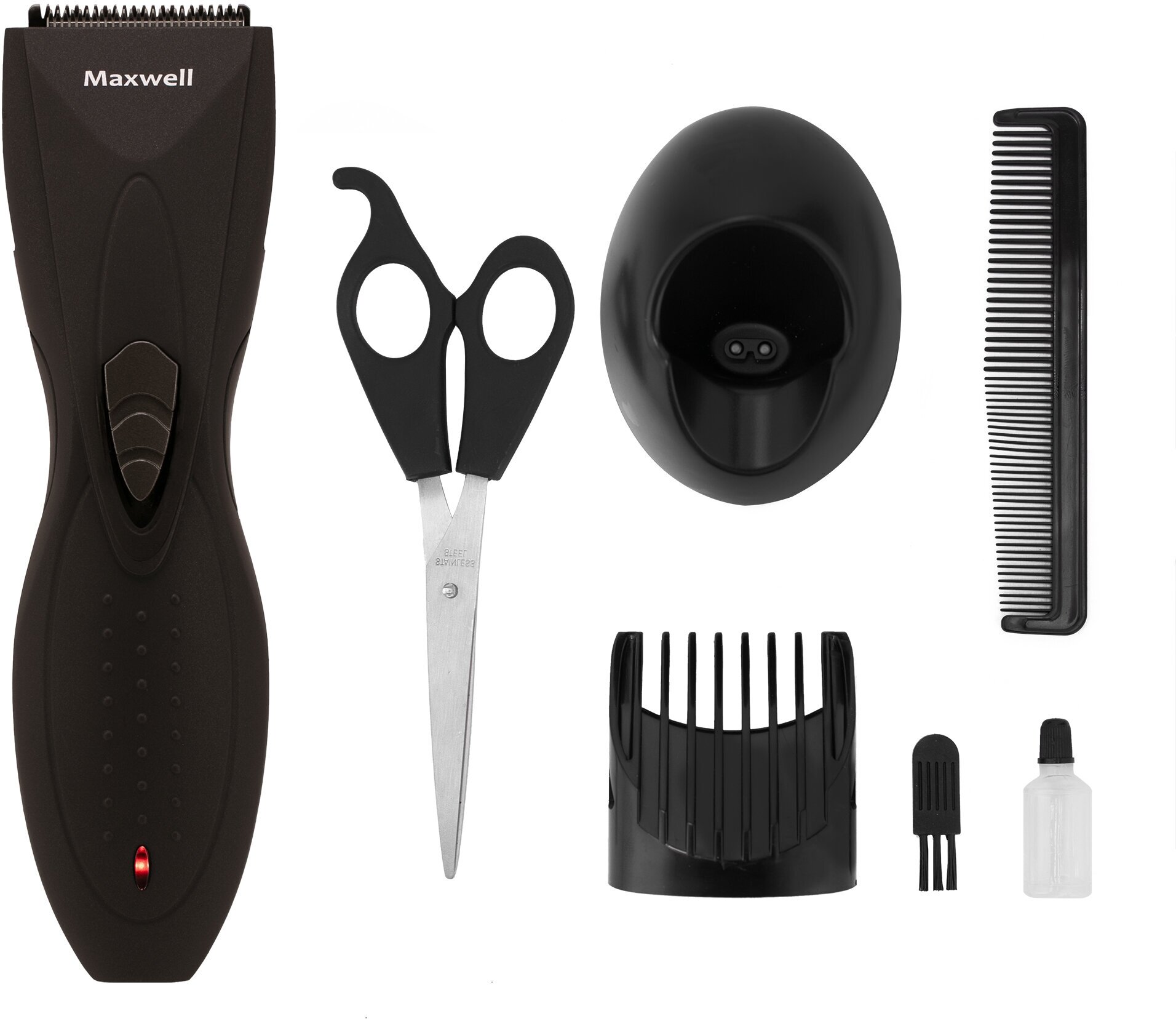 Purpose: for hair cutting, type: hair clipper, power: autonomous/from the mains, length adjustment method: changing attachments and adjustment, features: charging indicator, included: scissors, case, number of attachments: 2, in�