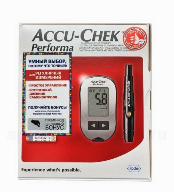 2 types of the same glucometer according to the displayed units of measurement: either mg/dl or mmol/l; connection to a PC via infrared; additional storage of up to 20 control measurements; operating temperature from +8 °C to +44 °C; individual