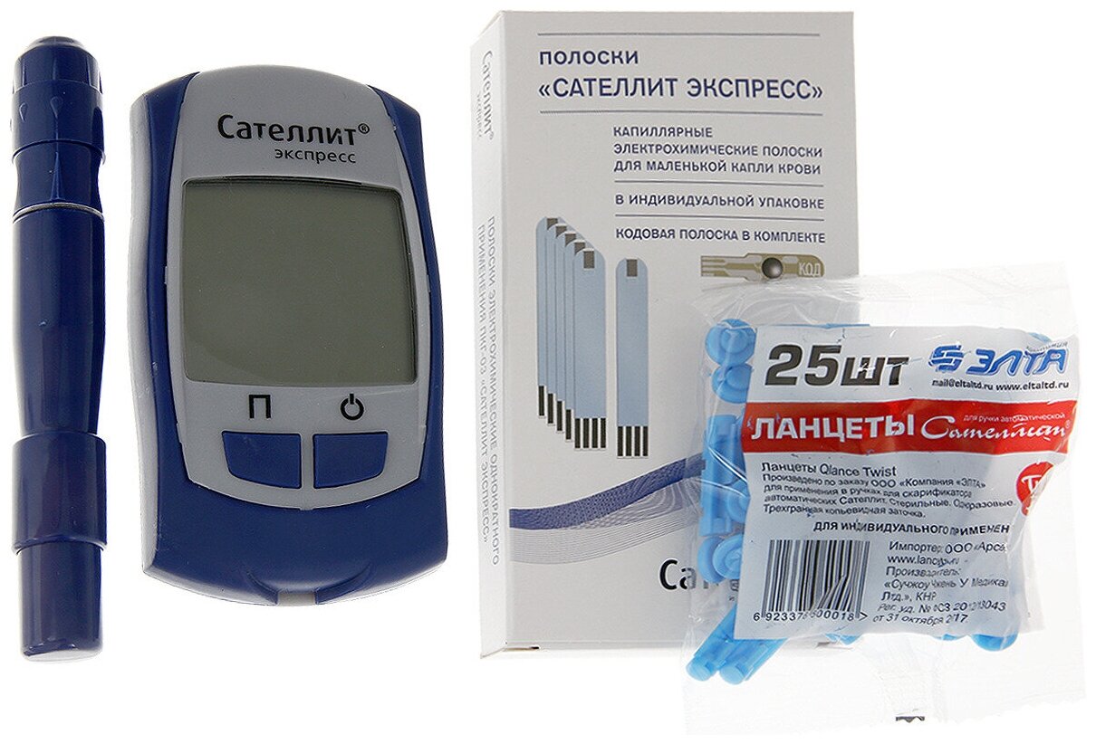- glucometer;<br/> - lancing device;<br/> - lancets, 25 pcs.;<br/> - glucose test strips, 25 pcs.;<br/> - control strip;<br/> - cover .