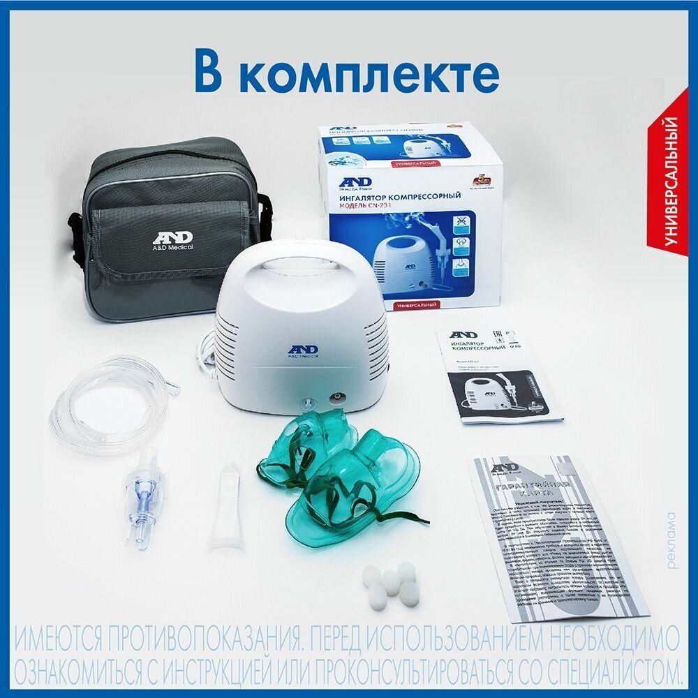 Compressor inhaler nebulizer, power supply: mains power, mains 220V, particle size: 4 microns, nebulization: 0.20 ml/min, medicine capacity: 13 ml, continuous operation time: 30 min