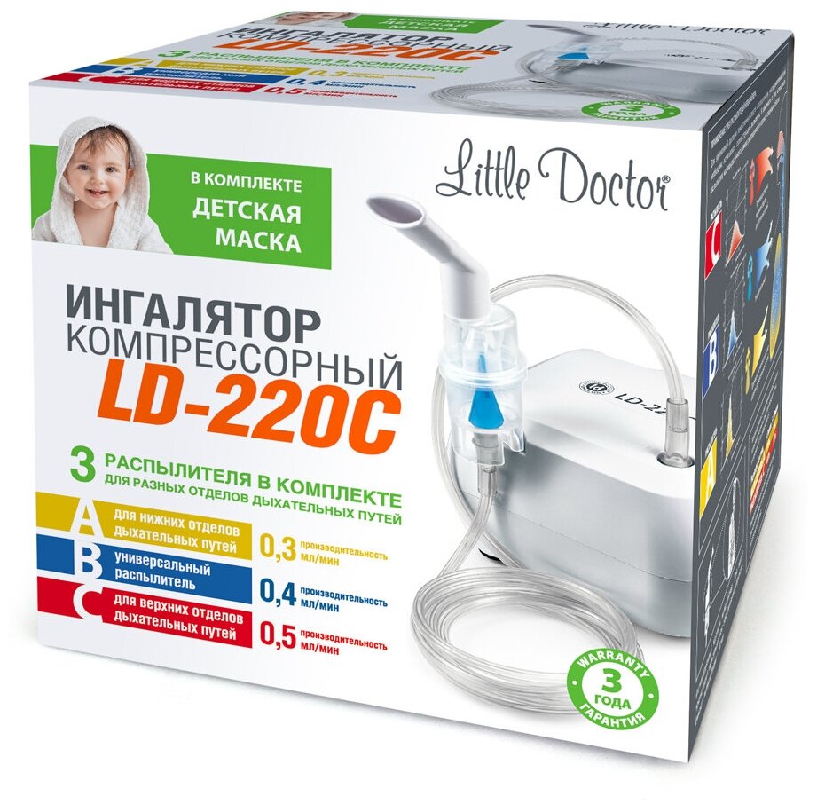 Compressor inhaler nebulizer, power supply: mains power, mains 220V, medicine capacity: 10 ml, continuous operation time: 20 min