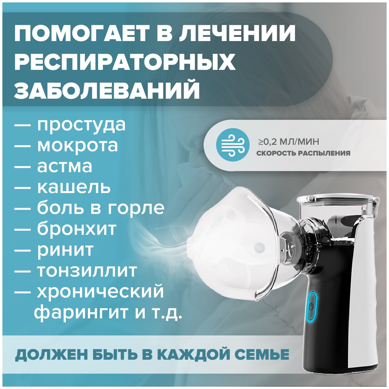 Mesh inhaler nebulizer, portable, power: USB, battery-powered, particle size: 3 microns, nebulization: 0.20 ml/min, medicine capacity: 8 ml
