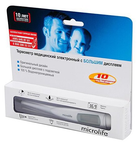 Electronic thermometer, measurement method: electronic, measurement time: 10 s, error: 0.10 °C