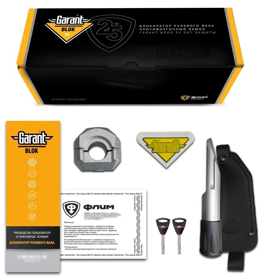 Additional Information: Principle of operation: the lock is installed on the steering shaft of the car and does not allow turning the steering wheel, resting against the rigid stationary elements of the car. With the steering wheel locked, it is impossible to turn the wheels and