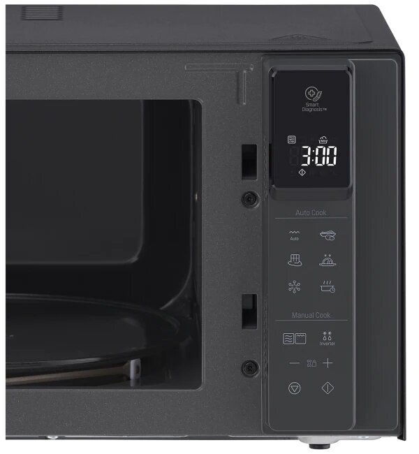 Child lock, display, camera illumination, uniform microwave distribution system