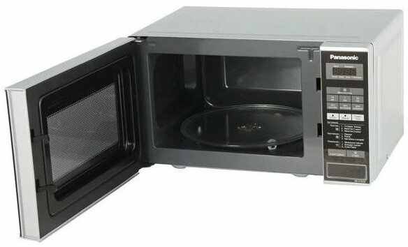 Child lock, display, camera backlight, recipe programming in memory, microwave uniform distribution system, turntable, temperature adjustment, with turntable, clock, time display
